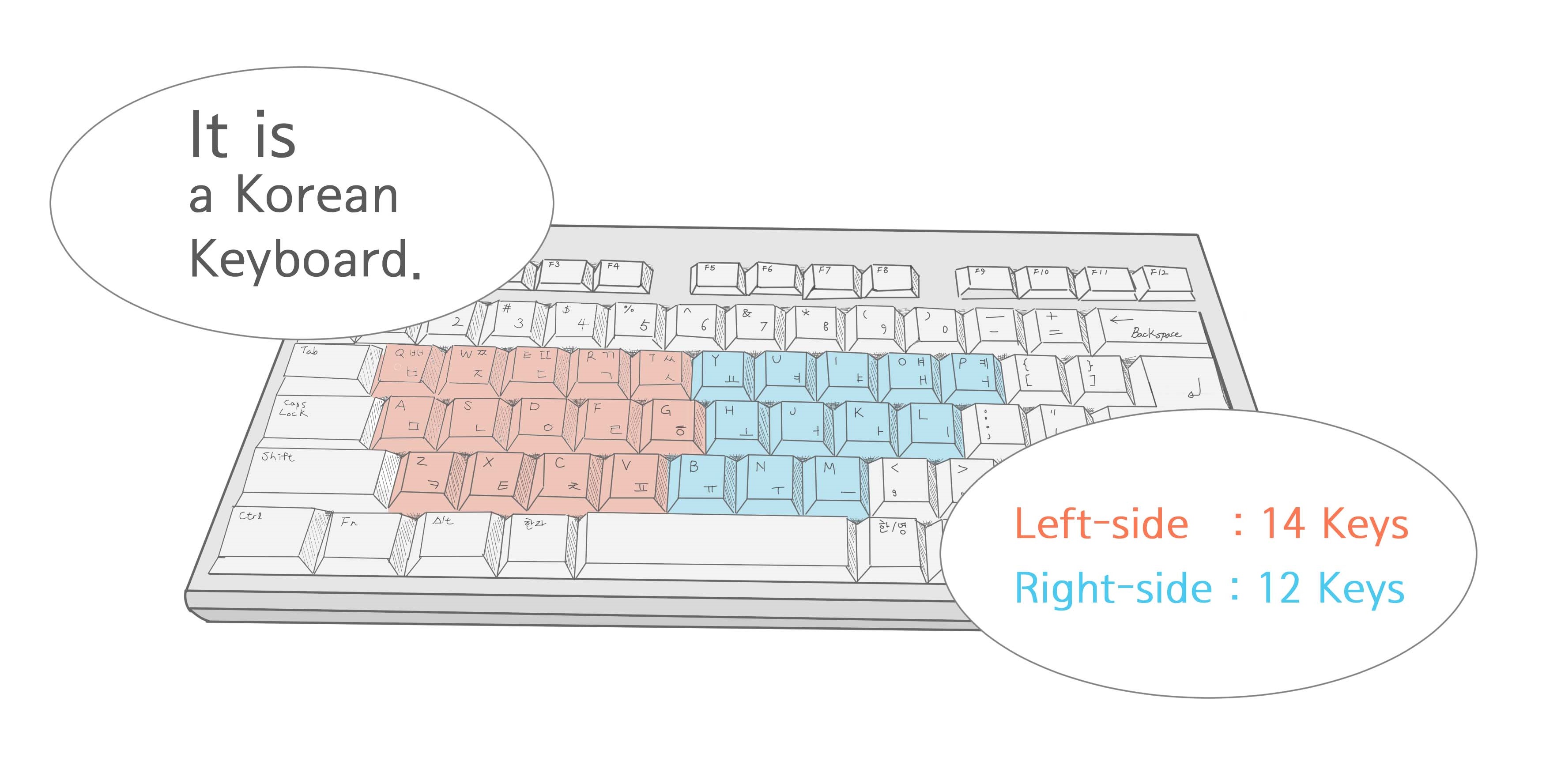 Korean is divided into consonants and vowels. consonants : ㄱ ㄴㄷㄹㅁㅂㅅㅇㅈㅊㅋㅌㅍㅎ vowels : ㅏ ㅑㅓㅕㅗㅛㅜㅠㅡㅣ