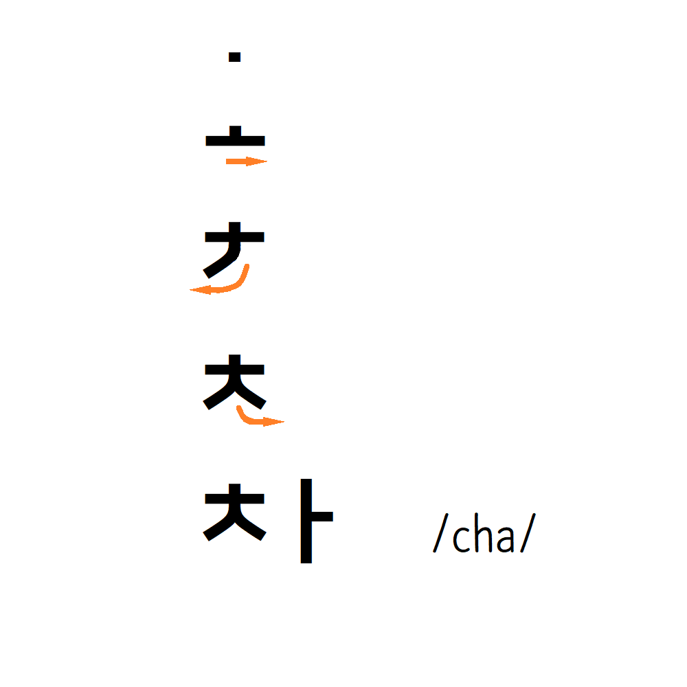 The ninth consonant 'ㅈ' sounds like 'j' and the first vowels 'ㅏ' sounds like 'a'. Two letters be combined to become '자' sounds like 'ja'.