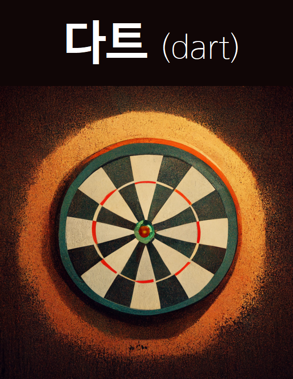 And dart-throwing is pronunced as '다(dar)'t-throwing. Koreans usually say 'dart'.